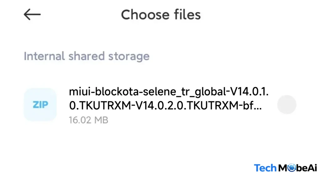 - قم بتحديد ملف الـ Zip الذي قمت بتحميله، ثم اضغط على “تحديث” واصبر حتى تنتهي العملية ويعيد الجهاز التشغيل.
