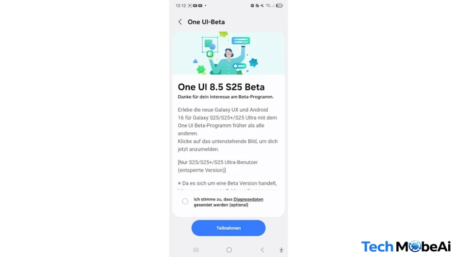 3. وافق على الانضمام إلى برنامج One UI 8.5 Beta.
