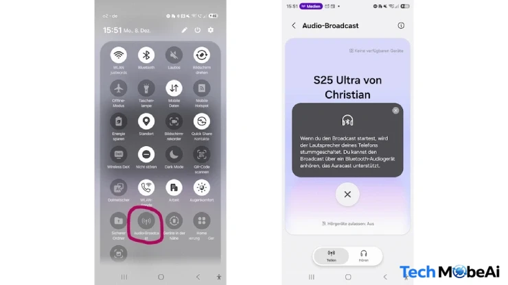 مع ميزة Audio Broadcast يمكن للهاتف أن يعمل كجهاز بث صوتي عبر البلوتوث.